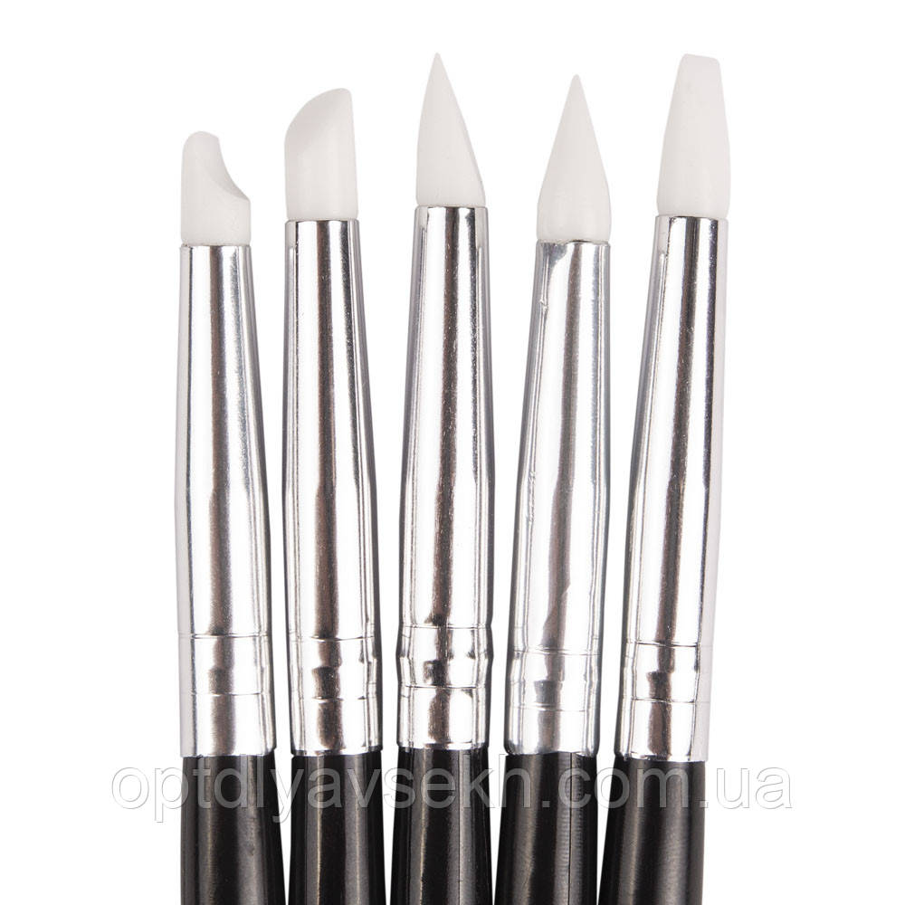 Пензлі для ліплення (їх так само називають скульптурними) - м'які і багатофункціональні,один і той самий пензель може бути використаний для віджимання акрилових елементів дизайну, при виконанні акрилового ліплення, для дизайну кольоровими гелями, при викладенні посмішки. Можна використати замість апельсинових паличок, для відсовування кутикули, прибирати надлишки матеріалу при роботі, що затік, і інших цілей. Різноманітність форм пензлів дає більше можливостей майстрові (вибрати для себе одну універсальну або використати спеціальні пензлі для кожного етапу моделювання).